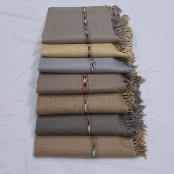 These wraps are perfect for those who appreciate natural, unbleached fibers and classic design. Each shawl features a subtle, traditional woven border detail near the edges and is finished with hand-tied natural fringes. The solid, neutral palette—including shades of natural cream, beige, and tan—makes them versatile for both men and women and suitable for any occasion, from casual warmth to formal layering.